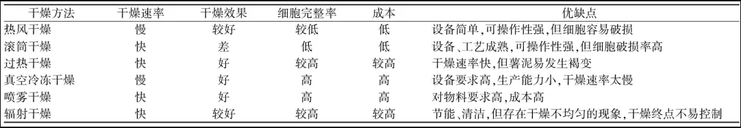 不同干燥方法的比較如表3所示。