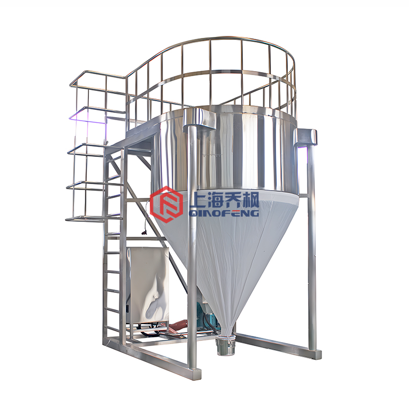 普通的噴霧干燥機(jī)的干燥室是用不銹鋼制成的,收粉另需旋風(fēng)分離器等設(shè)備,而袋式噴霧干燥機(jī)的干燥室是一個拆裝方便的大布袋,因此粉體產(chǎn)品不分粗細(xì)皆于袋底一處回收,特別適用于精密陶瓷等產(chǎn)品粒徑不需分級的造粒和干燥。